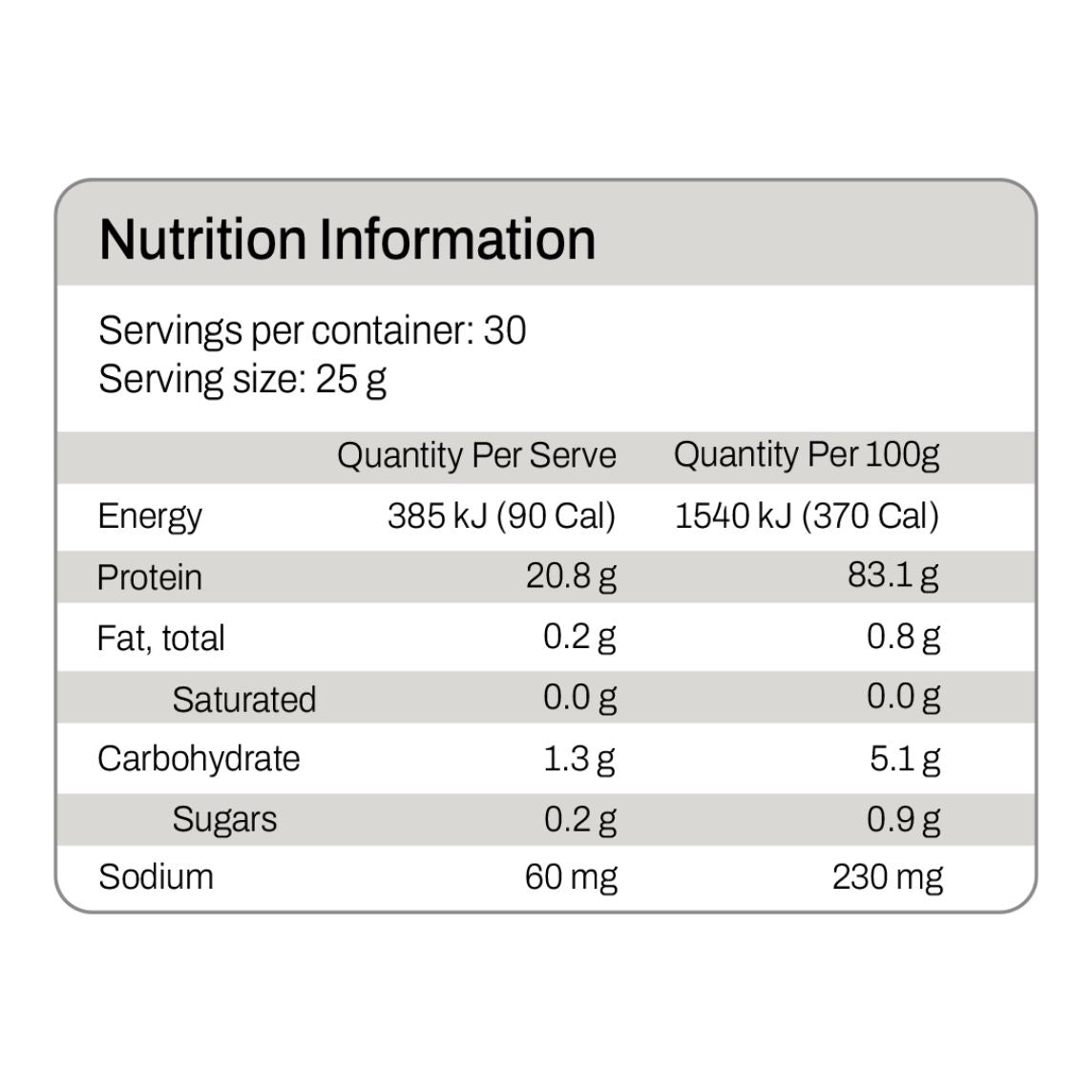 | Serving Size: 1 Heaped Scoop (approx. 25g) | ||