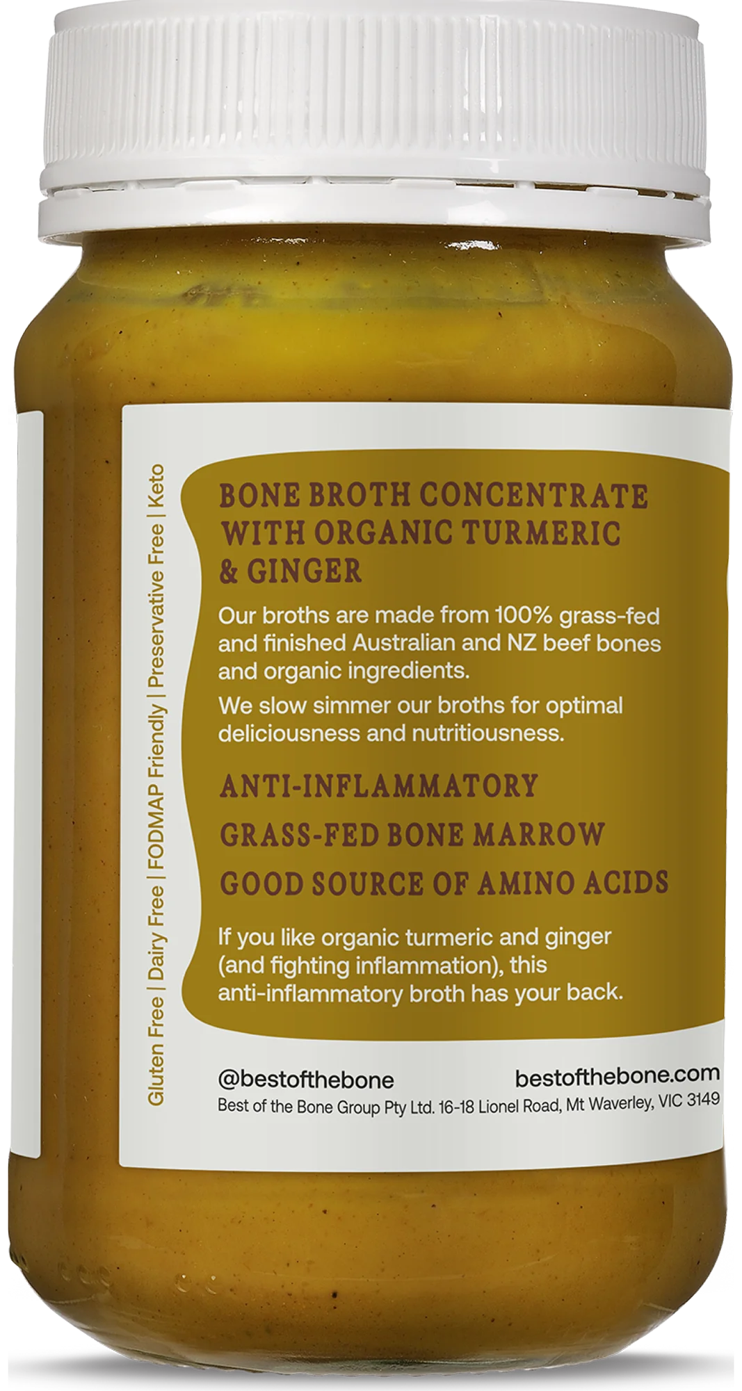 A gut and anti-inflammatory powerhouse! The richest, most nutrient dense slow-cooked (for 48+ hours,) certified grass fed and finished certified bone broth gelatin (NOT powder but a living, enzyme and nutrient rich gelatin) - is packed with the most absorbable collagen protein, 19 vital amino acids and 80+ minerals. Add a cup of warm water to a spoonful of Best of the Bone for quick, nutrient dense broths or as a base for rich soups and amazing sauces.