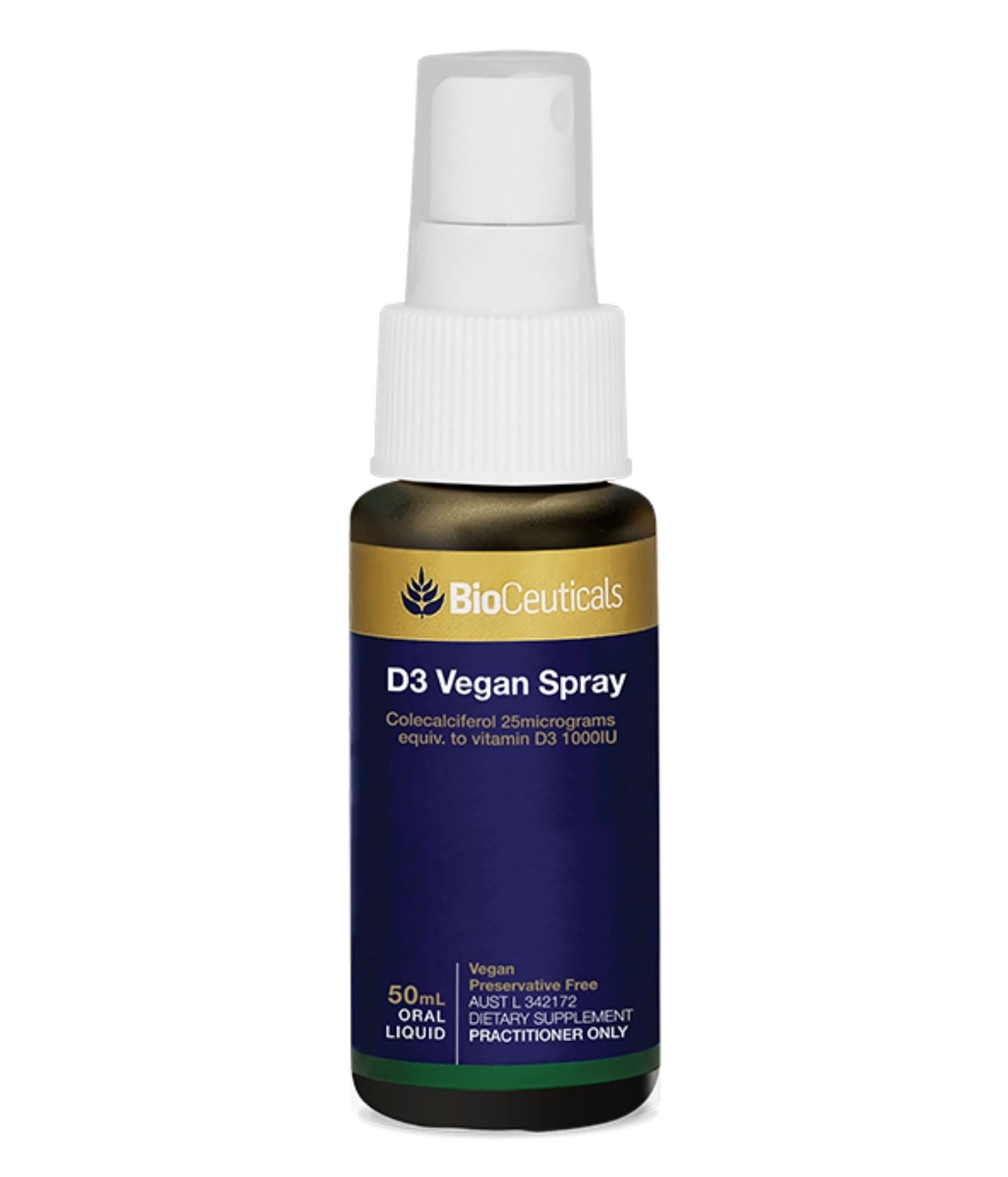 BioCeuticals D3 Vegan Spray, provides a therapeutic dose of Vitamin D3 with 1000IU per spray in a rice bran oil base to support healthy bone development & healthy cardiovascular & immune system function.