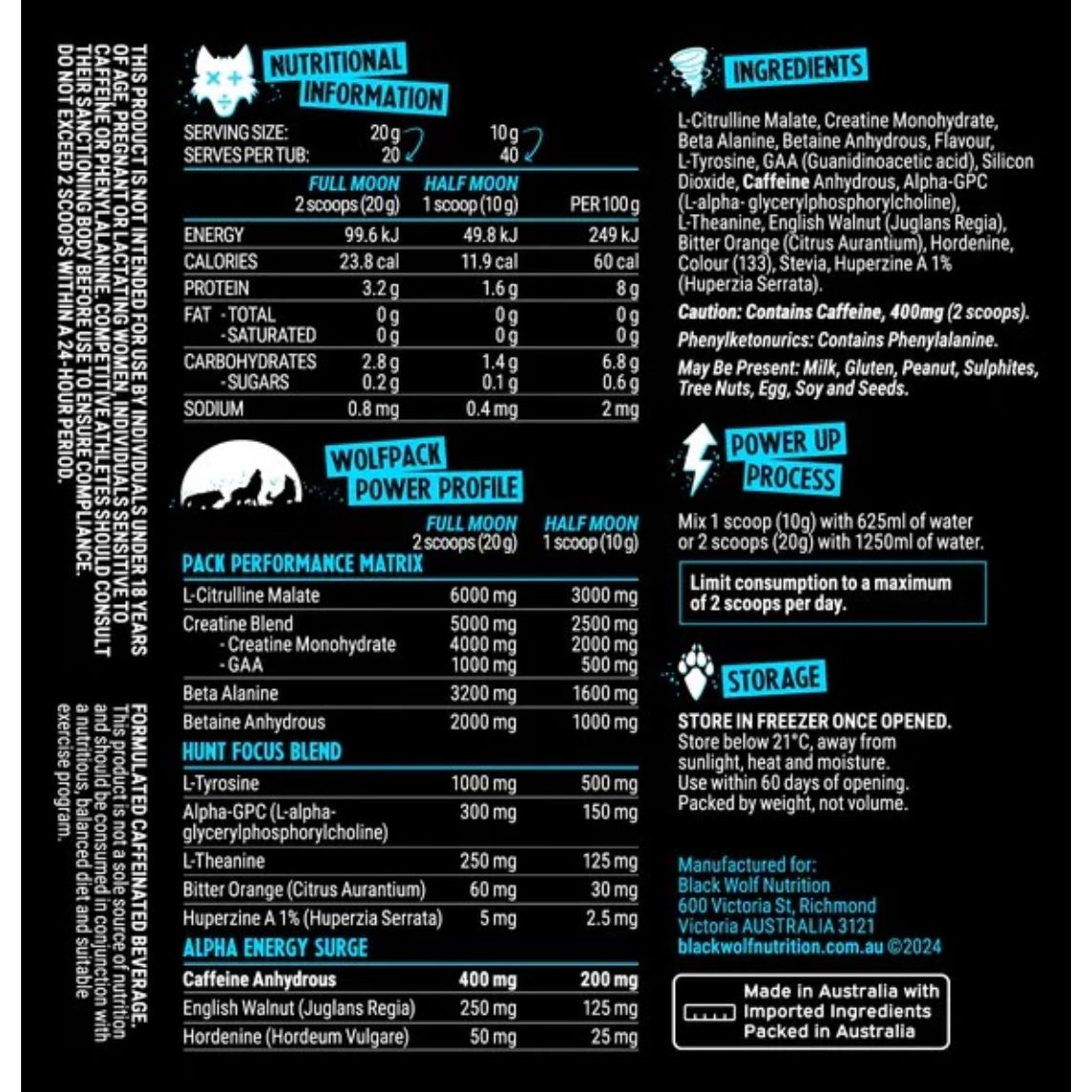 Unleash the Alpha within with the new Black Wolf Nutrition PRE, the ultimate high-stim pre-workout formula for peak performance and relentless energy.