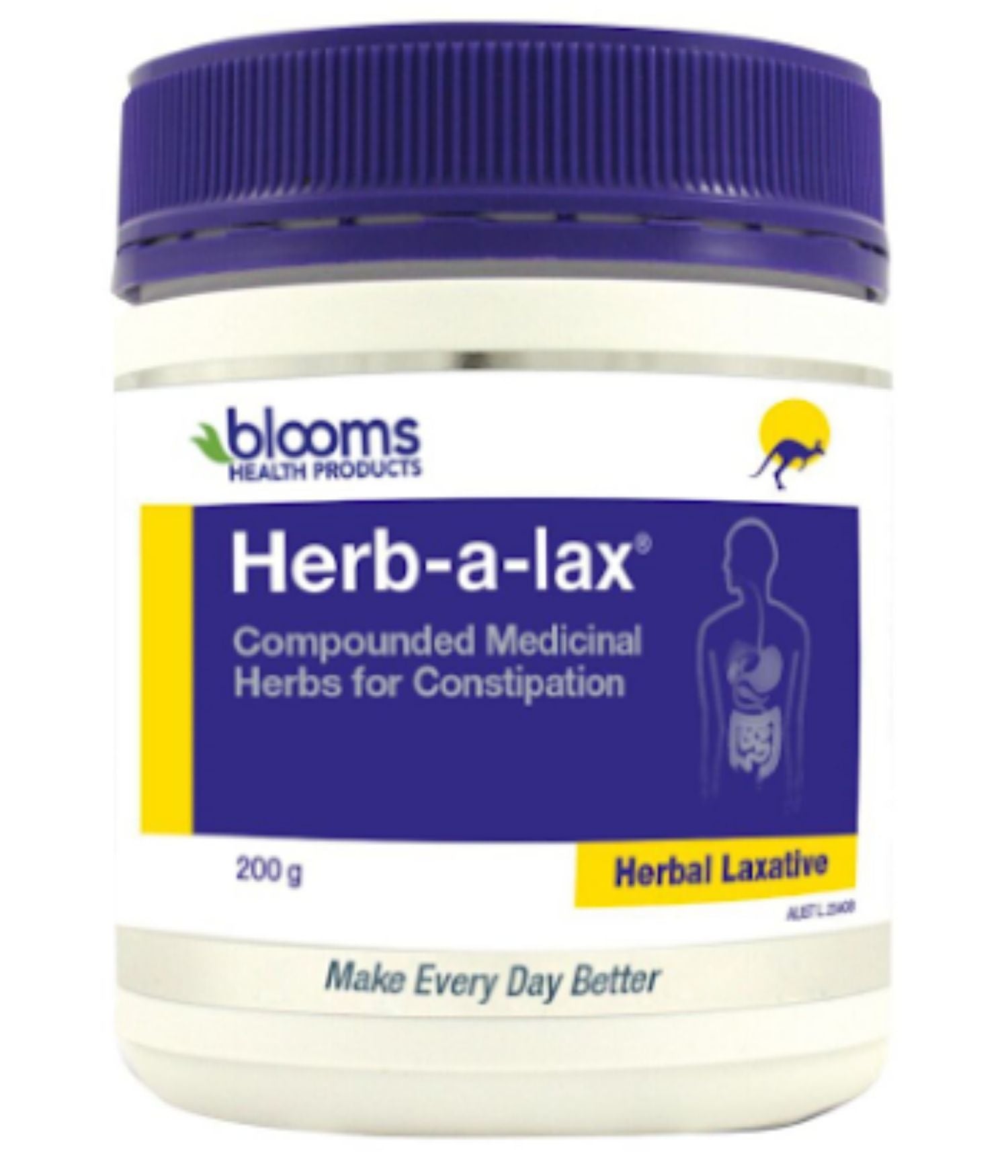 Blooms Herb-a-lax® compounded herbs is a gentle, yet effective natural laxative which also helps relieve wind and bloating. Created using a special formulation of senna leaf, buckthorn bark, psyllium seed, dill seed and liquorice root powder.