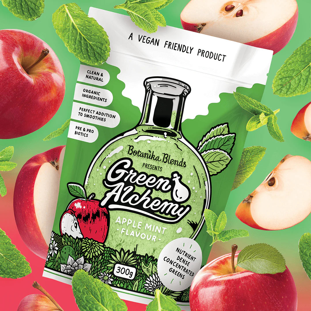 Meet your new daily ritual: a super greens powder bursting with organic goodness and legit flavour. Green Alchemyblends certified organic ingredients like Spirulina, Chlorella, Barley Grass, Wheat Grass, and Aloe Vera into a smooth, refreshing Apple-Mint blend that’s actually enjoyable to drink.
