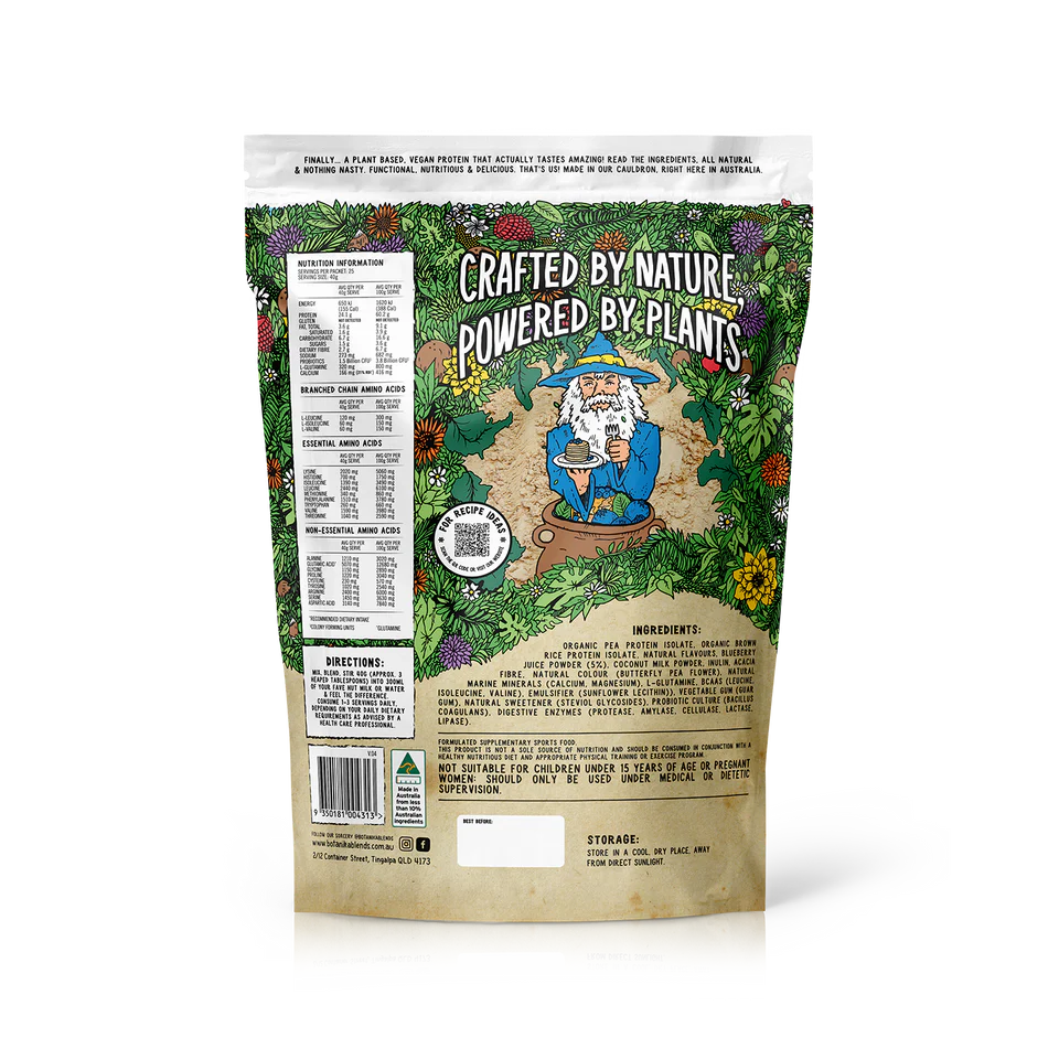 Crafted in Australia using premium organic pea and brown rice proteins, each serve packs 24.1g of complete plant-based protein to support muscle recovery and sustained energy. Naturally flavoured with real blueberry and butterfly pea, this formula is enriched with probiotics, prebiotics, and digestive enzymes for optimal gut health. 100% gluten-free, dairy-free, and crafted to be as delicious as it is nutritious.