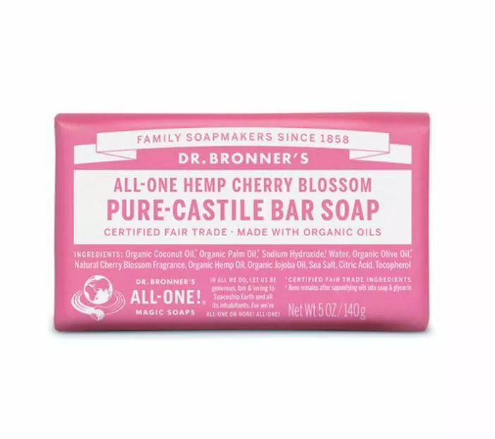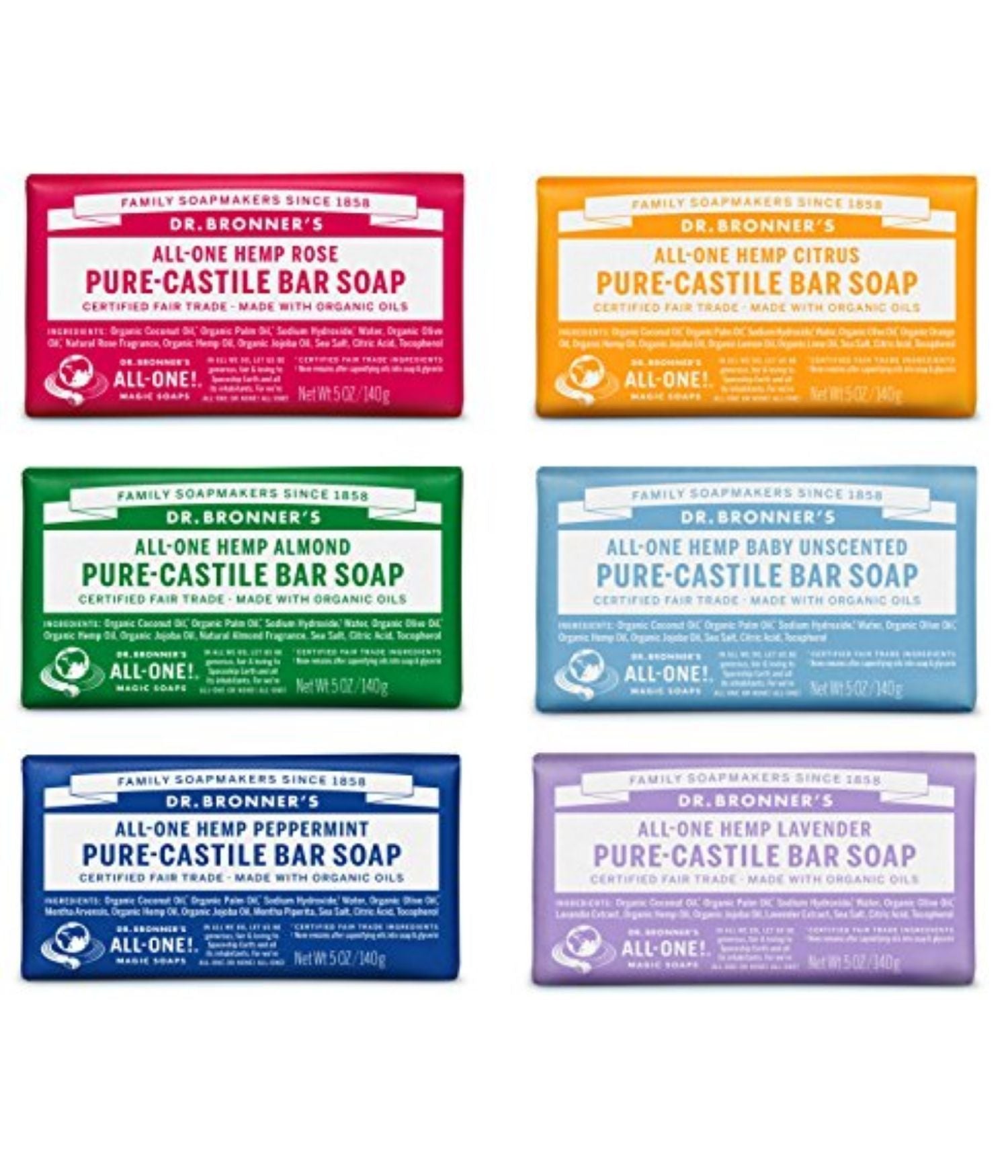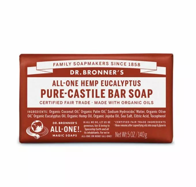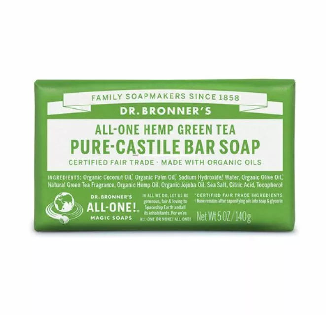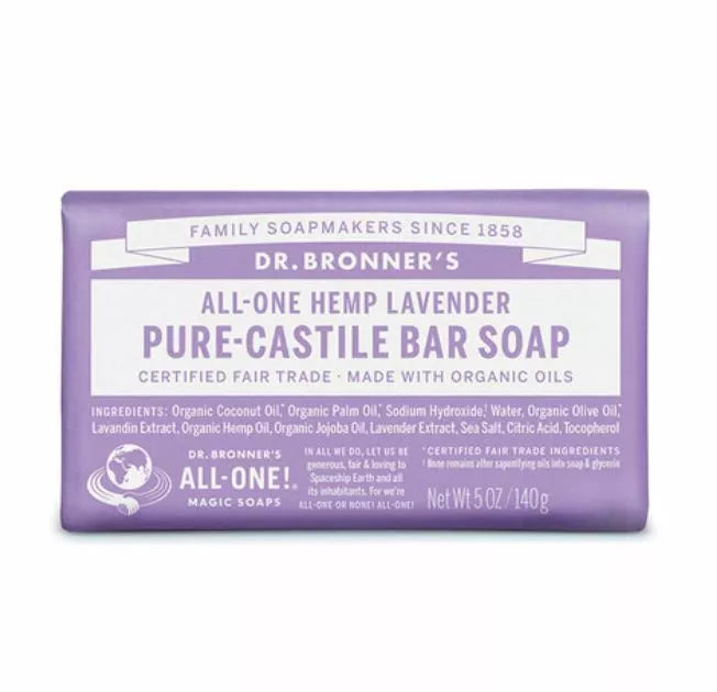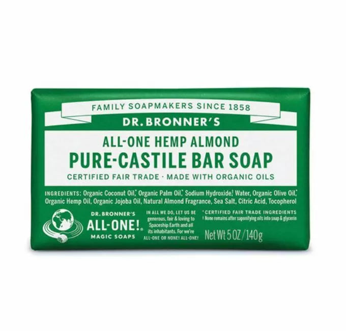 Dr. Bronner’s Pure-Castile Bar Soaps are biodegradable-vegan, gentle and versatile, good for washing body, face or hair!