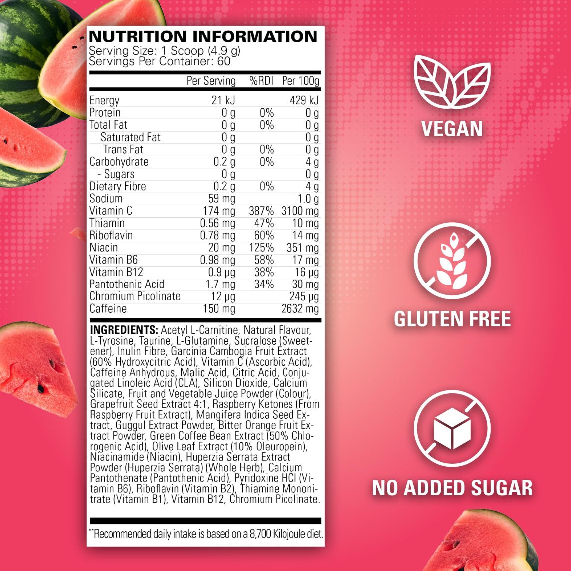 A number of ingredients have been added to help stimulate the body’s fat receptor cells and help boost metabolism to promote an increased level of fat cell break-down. Green Coffee bean extract has been heavily researched and scientifically validated to reduce body weight and BMI. In addition, Acetyl L-Carnitine HCl and Conjugated Linoleic Acid (CLA) have shown to reduce fat inhibition and reduce fat tissues. To help reduce stubborn belly fat, Garcinia Cambogia has been added due to its potential benefits of reduced abdominal fat and prevention of visceral fat.
