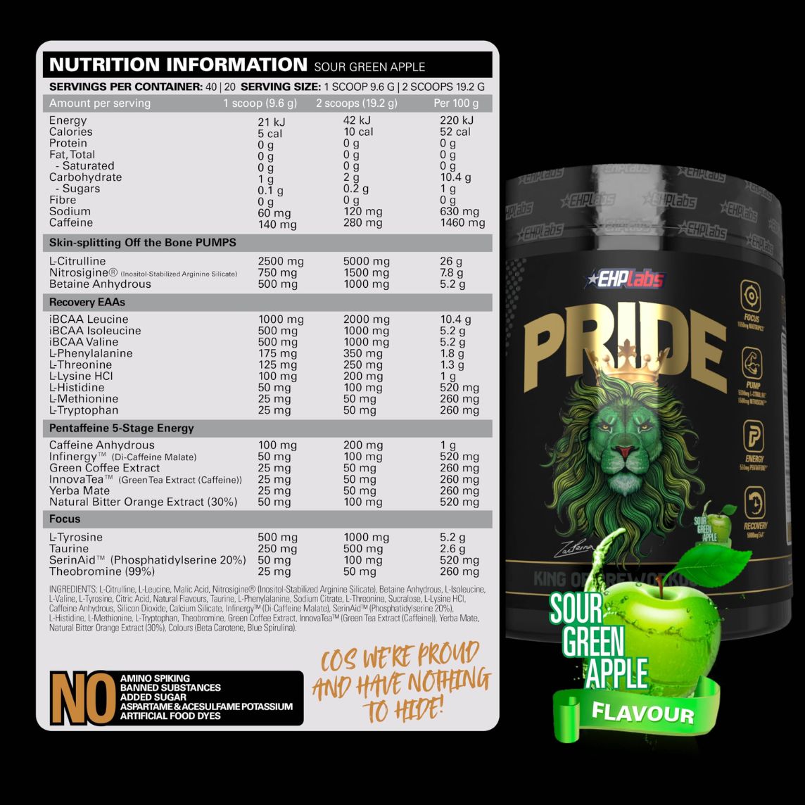 PRIDE is clinically dosed, full strength pre-workout for those who take their training seriously. Train with MORE energy, MORE focus and EPIC pumps.
