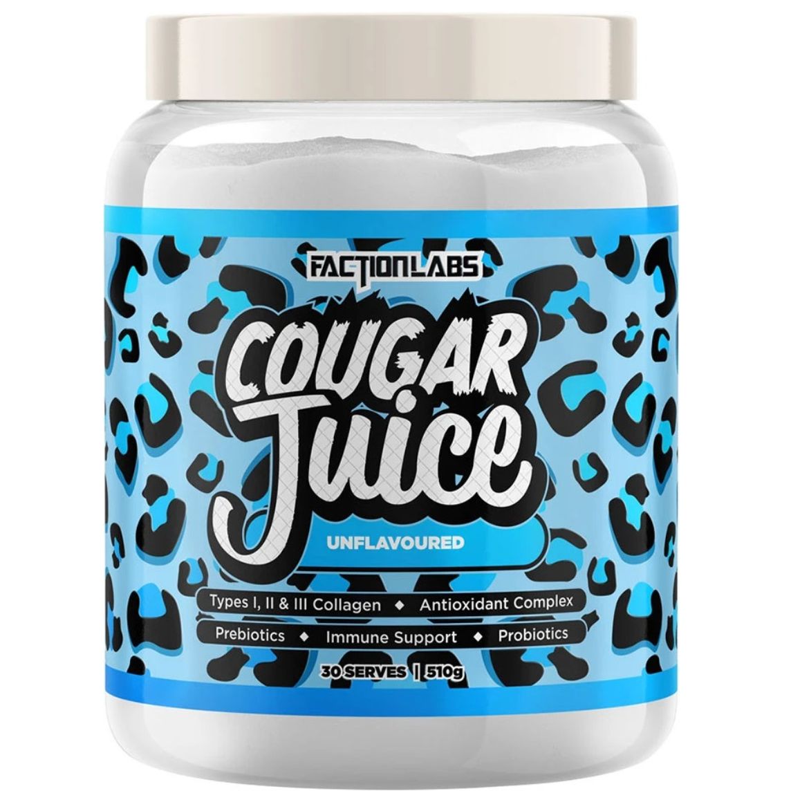 Comprised of a blend of Marine, Bovine & Cartilage Collagen, Faction Labs Cougar Juice delivers a unique and complete source of the highest quality protein.