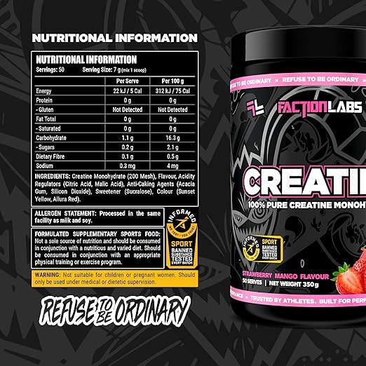 Faction Labs Creatine Monohydrate 350g 50 serves Strawberry Mango