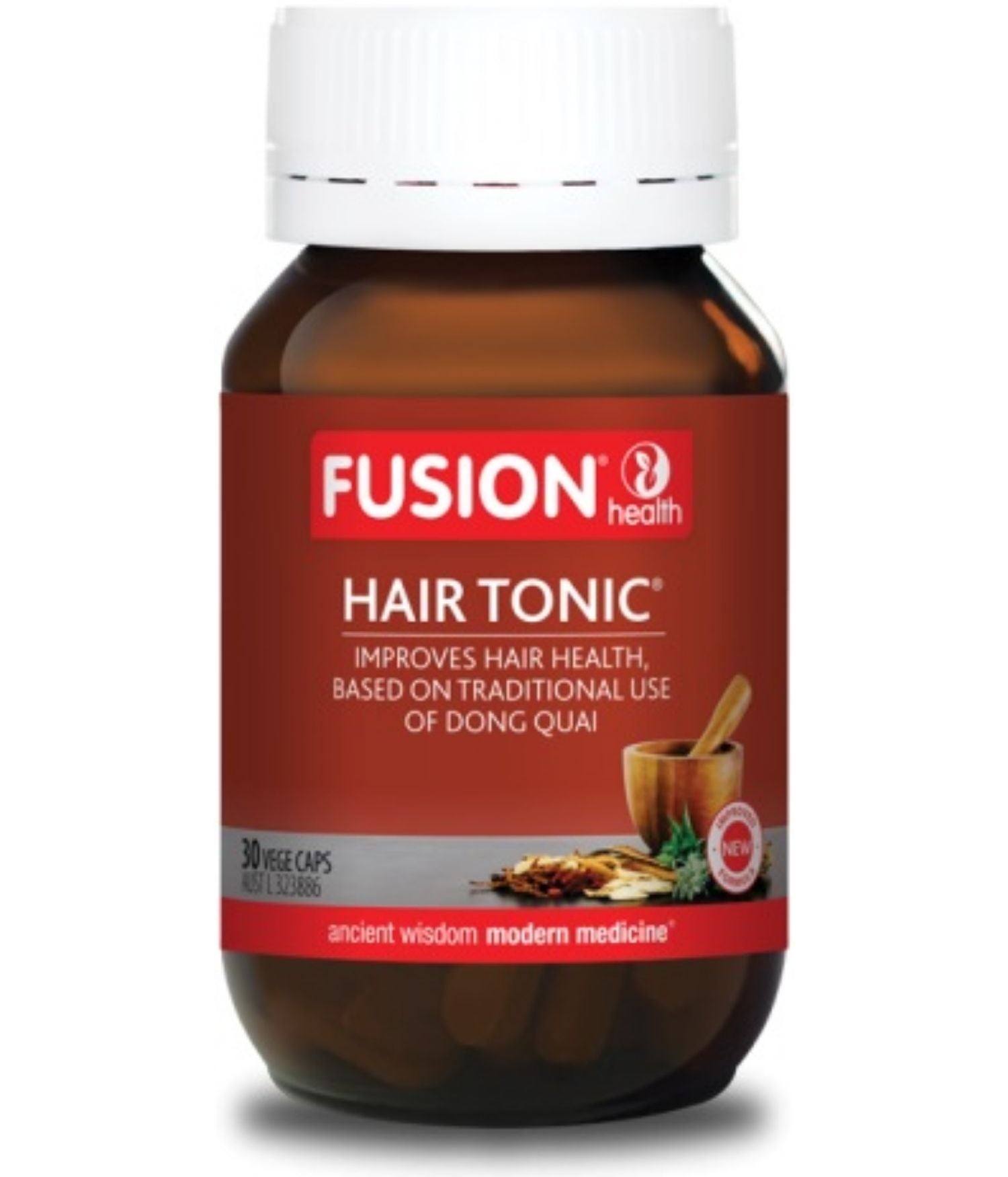 Fusion Hair Tonic is suitable for use alongside Hair, Skin & Nails which combines dong quai with silica, biotin and zinc – 15 nutritionals in all.