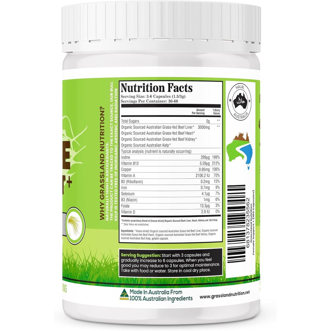 Introducing "Female Support," a unique product designed specifically for women's holistic well-being. Our formula is a carefully crafted blend of organically sourced grass-fed beef organs, including liver, kelp, kidney, and heart. With 180 capsules per bottle, it's a convenient and comprehensive solution to address women's health needs.