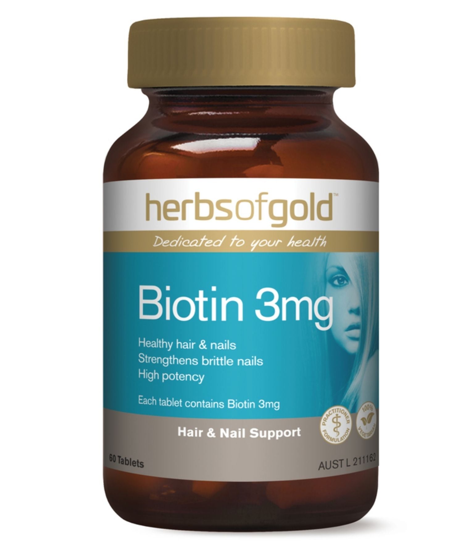 - Herbs of Gold Biotin 3mg helps support and maintain healthy hair and nails as well as helping to strengthen brittle nails and reduce nail splitting.