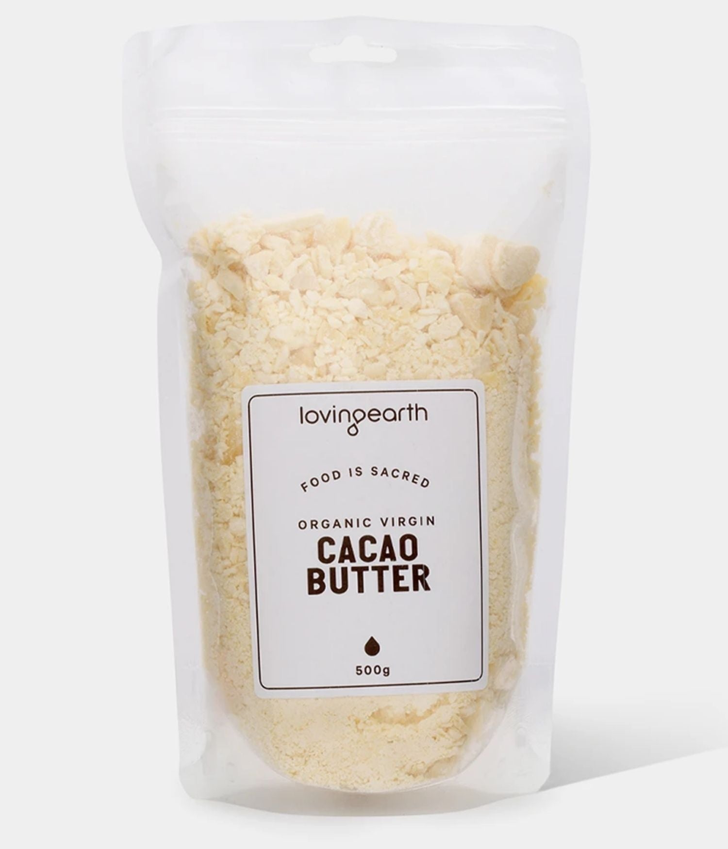 Loving Earth Virgin Cacao Butter is made by pressing the Raw Cacao Nibs to preserve the full vitality of the raw cacao. The butter melts at about 35ºC...desserts will never be the same again!