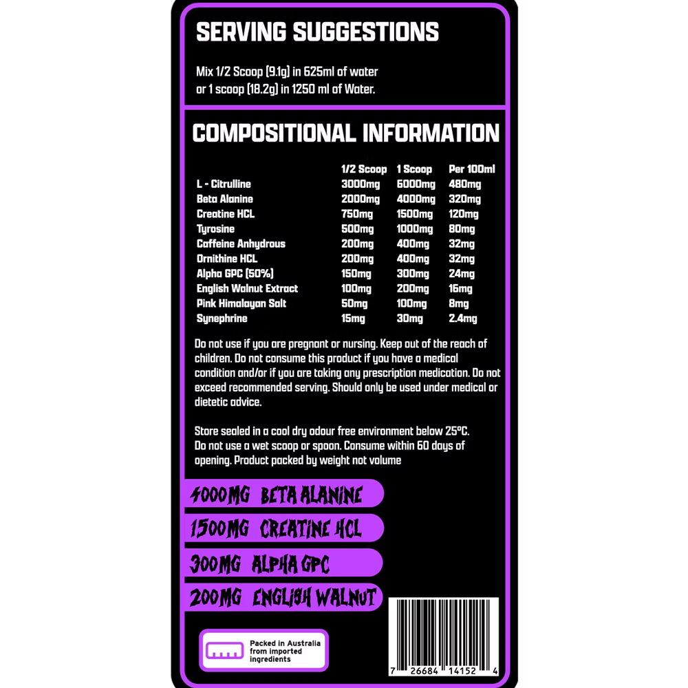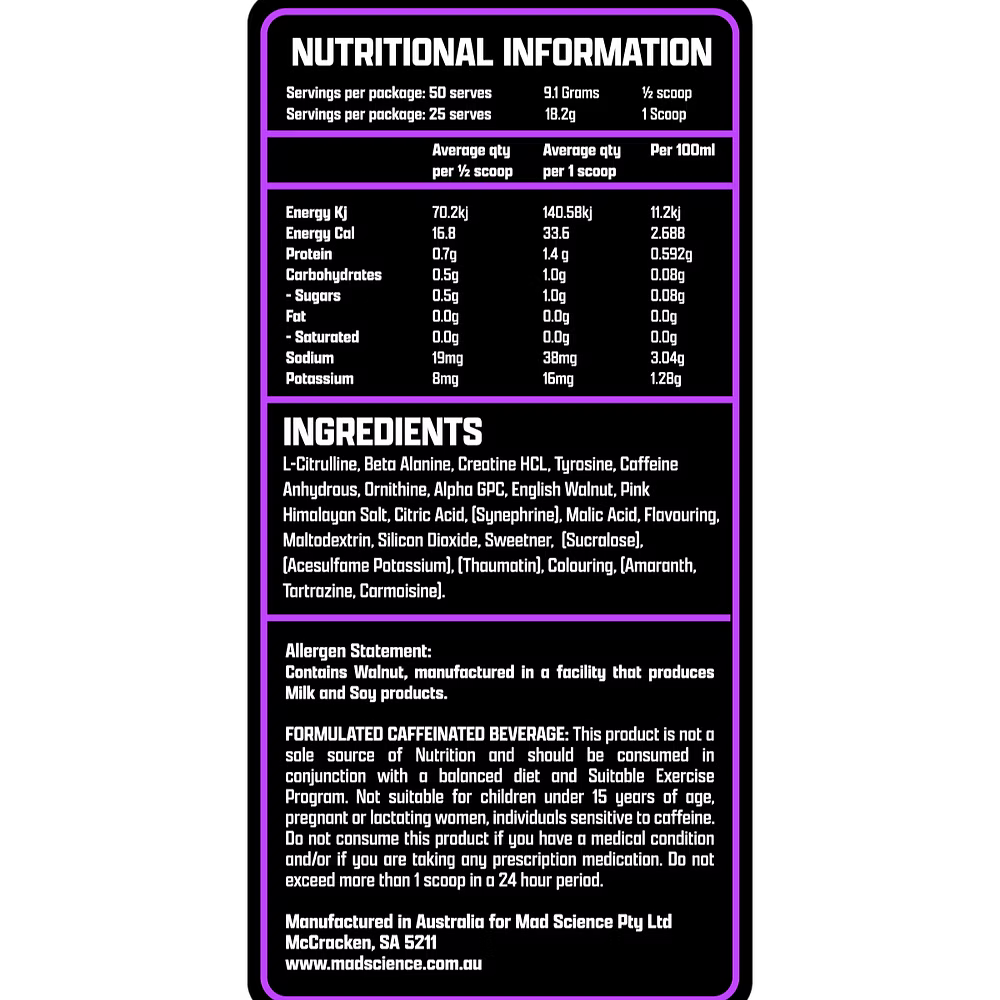 Mad Science Extreme Pre-Workout delivers a powerful blend of clinically dosed ingredients designed to maximise performance, focus, and endurance during every session. Formulated to push physical and mental limits, this high-intensity formula supports strength, pump, and energy output for those who demand more from their workouts.