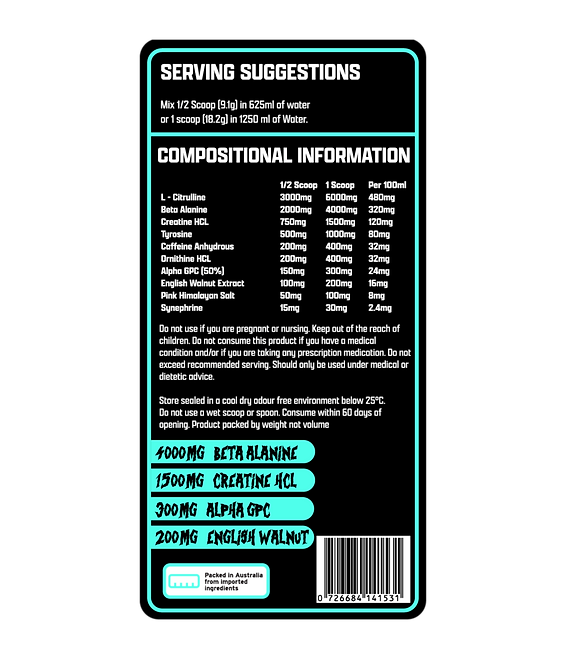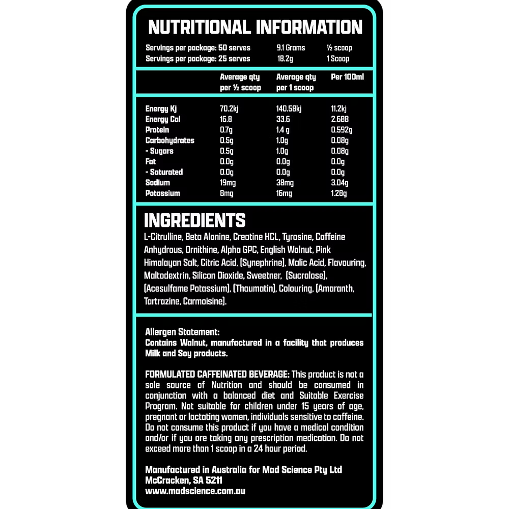 Mad Science Extreme Pre-Workout delivers a powerful blend of clinically dosed ingredients designed to maximise performance, focus, and endurance during every session. Formulated to push physical and mental limits, this high-intensity formula supports strength, pump, and energy output for those who demand more from their workouts.