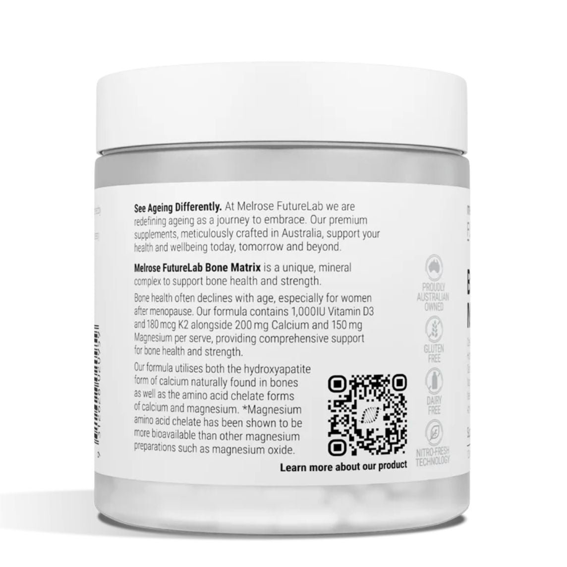 A unique, mineral complex to support bone health and strength. Bone health often declines with age, especially for women after menopause. Our formula contains 1,000IU Vitamin D3 and 180 mcg K2 alongside 200 mg Calcium and 150 mg Magnesium per serve, providing comprehensive support for bone health and strength.