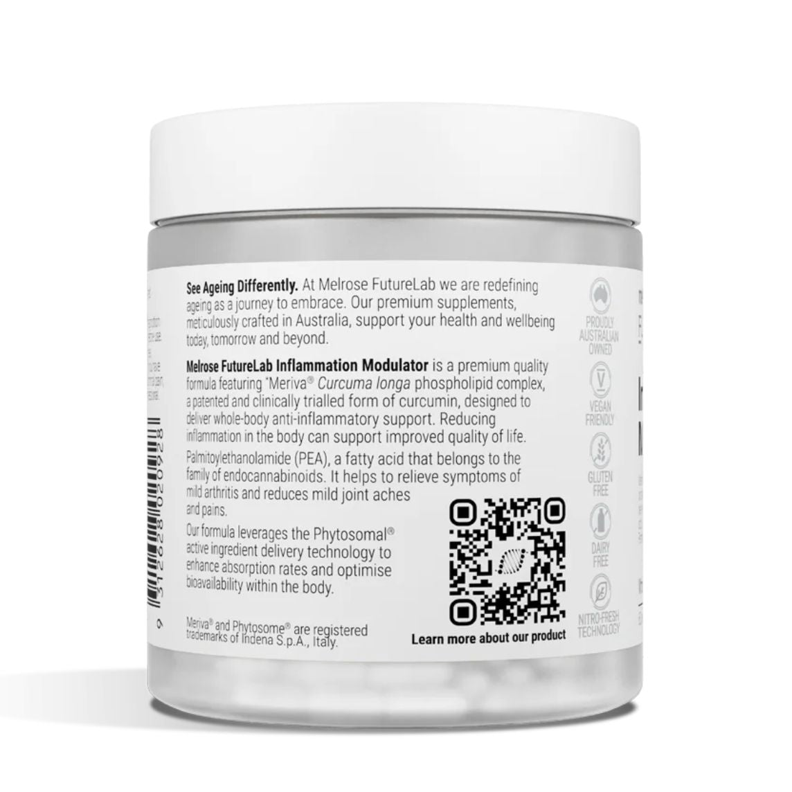 A premium quality formula featuring *Meriva® Curcuma longa phospholipid complex, a patented and clinically trialled form of curcumin, designed to deliver whole-body anti-inflammatory support. Reducing inflammation in the body can support improved quality of life. Palmitoylethanolamide (PEA), a fatty acid that belongs to the family of endocannabinoids. It helps to relieve symptoms of mild arthritis and reduces mild joint aches and pains. Our formula leverages the Phytosomal® active ingredient delivery technology to enhance absorption rates and optimise bioavailability within the body.