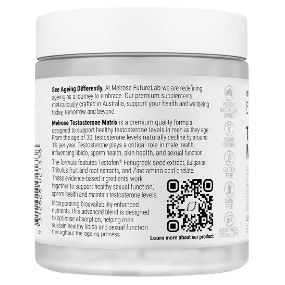 Melrose Testosterone Matrix is a premium quality formula designed to support healthy testosterone levels in men as they age. From the age of 30, testosterone levels naturally decline by around 1% per year. Testosterone plays a critical role in male health, influencing libido, sperm health, skin health, and sexual function.