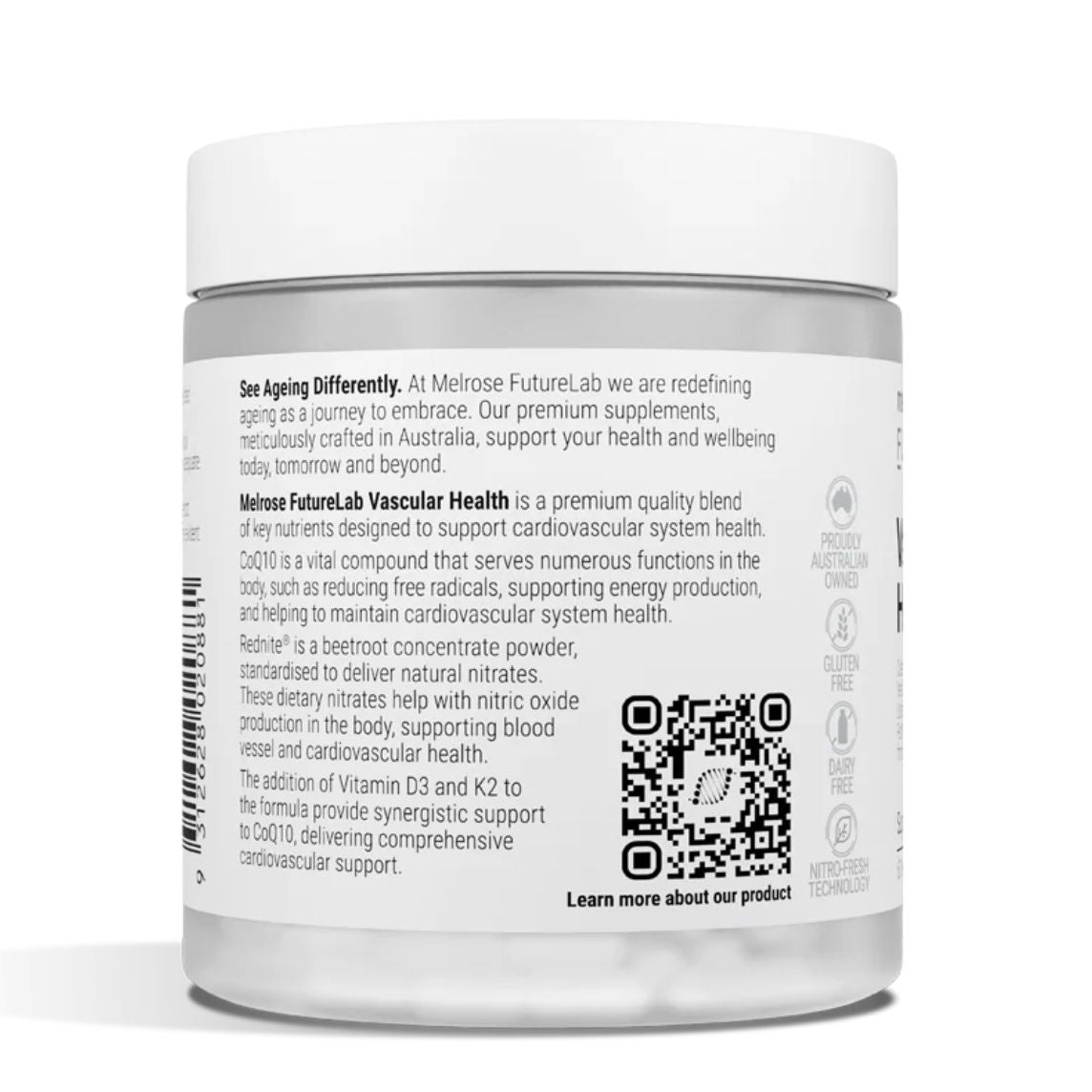 Rednite® is a beetroot concentrate powder, standardised to deliver natural nitrates. These dietary nitrates help with nitric oxide production in the body, supporting blood vessel and cardiovascular health. The addition of Vitamin D3 and K2 to the formula provide synergistic support to CoQ10, delivering comprehensive cardiovascular support.