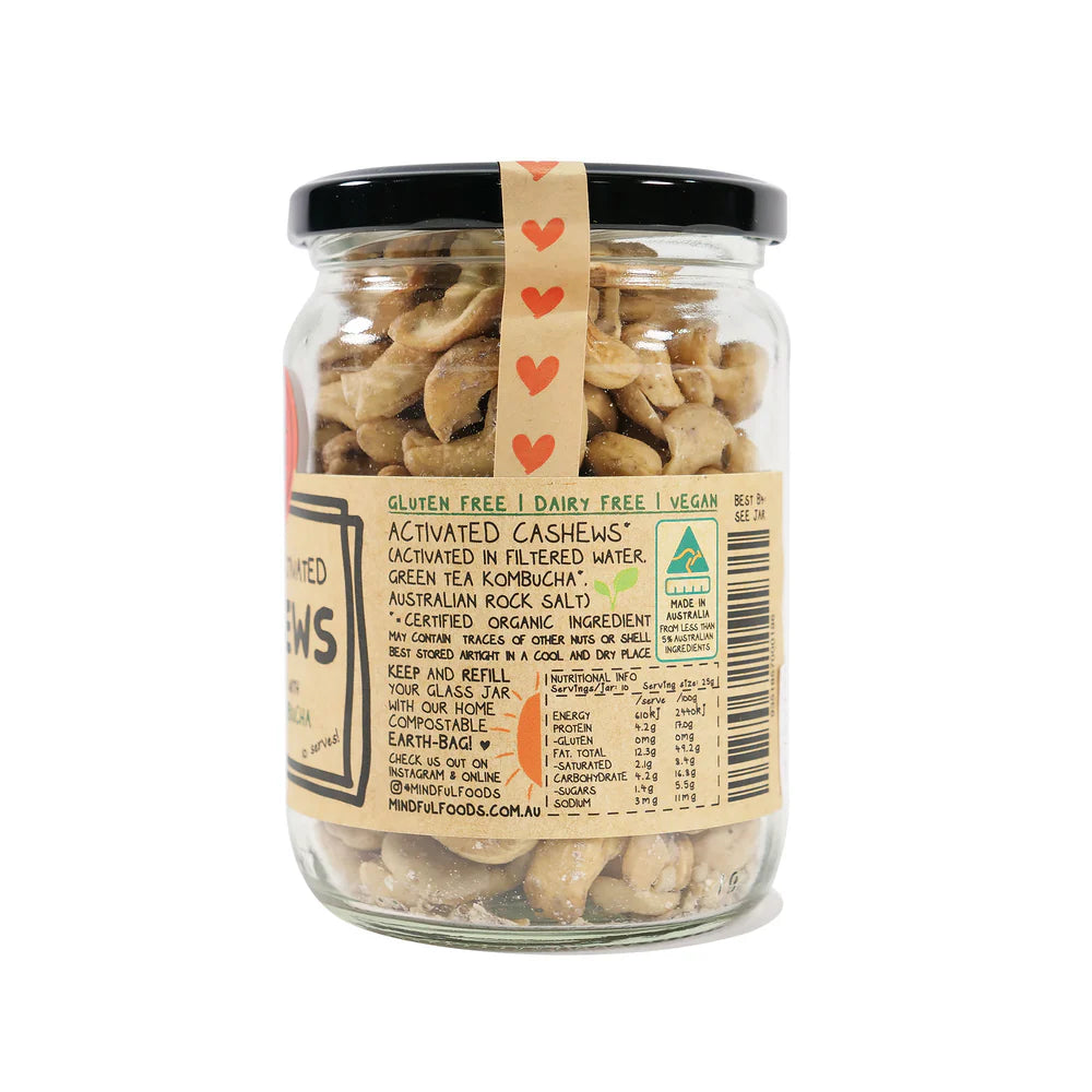 Mindful Foods’ Activated Organic Cashews are soaked overnight in probiotic kombucha, filtered water, and Australian rock salt, then slowly dried below 60°C to preserve their nutrients and natural flavor. The result is a light, crunchy cashew that’s incredibly easy to digest and perfect for mindful snacking.