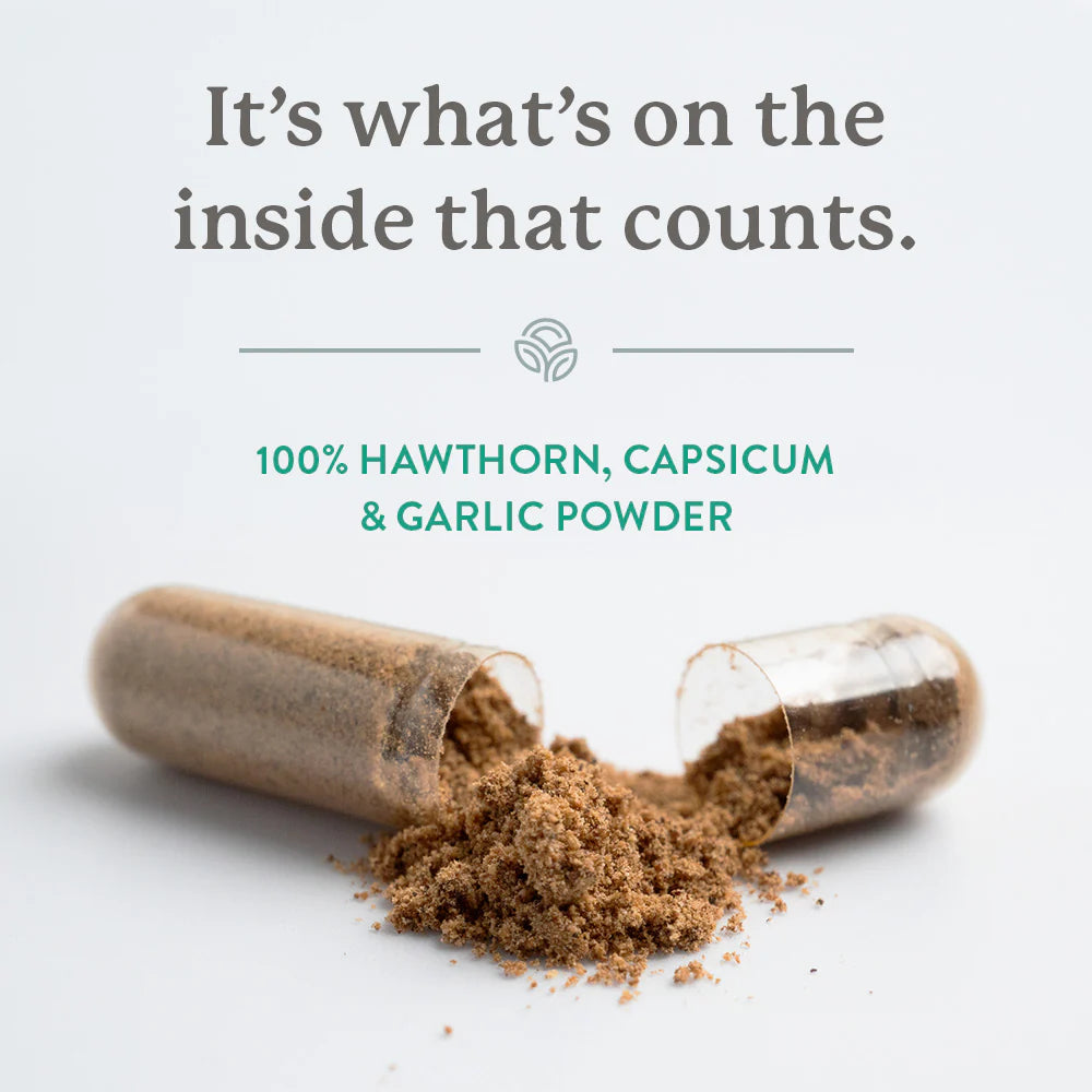 Powerful herbal blend – Features Hawthorn berries, Capsicum, and Garlic for comprehensive cardiovascular support