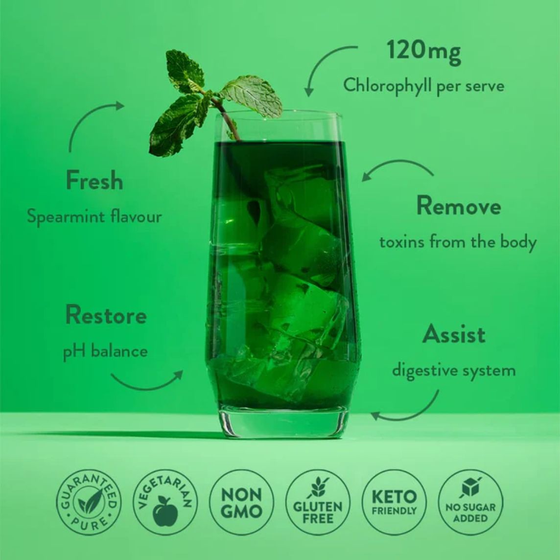 Chlorophyll is a natural internal deodoriser that helps to alkalise, detoxify and cleanse the body from the inside out. Rich in vitamins, minerals and essential amino acids. This is ideal to help increase overall wellbeing.