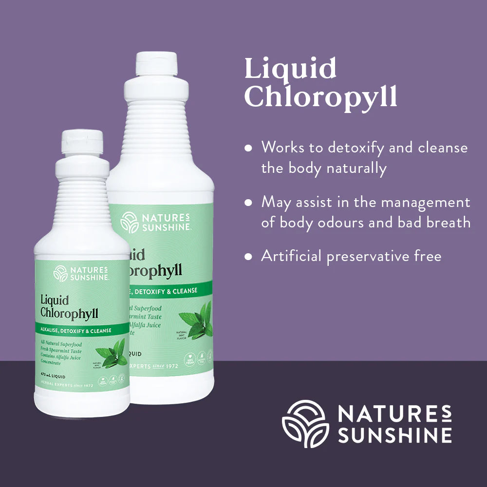 Take one to three teaspoons (5-15mL) daily, can be taken straight or diluted straight or diluted in water or juice. May also be mixed with water in your drink bottle and sipped throughout the day. It is recommended that once opened Nature's Sunshine Liquid Chlorophyll be stored in the fridge and consumed within 90 days.