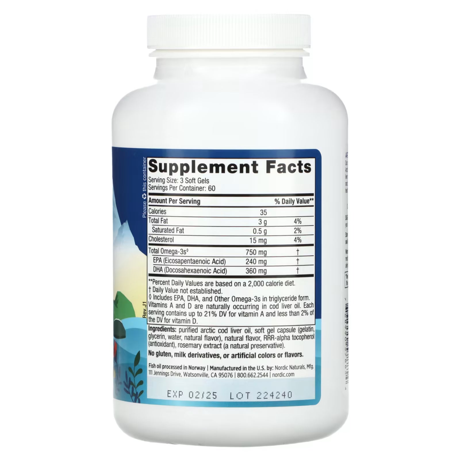 Nordic Naturals Arctic Cod Liver Oil is sourced exclusively from 100% wild Arctic cod—never blended with other fish oils or synthetic additives. This high-quality omega-3 supplement supports heart, brain, nervous system, and immune health. Unlike fermented oils, our cod liver oil is purified to remove free fatty acids and prevent rancidity, ensuring optimal freshness and stability.