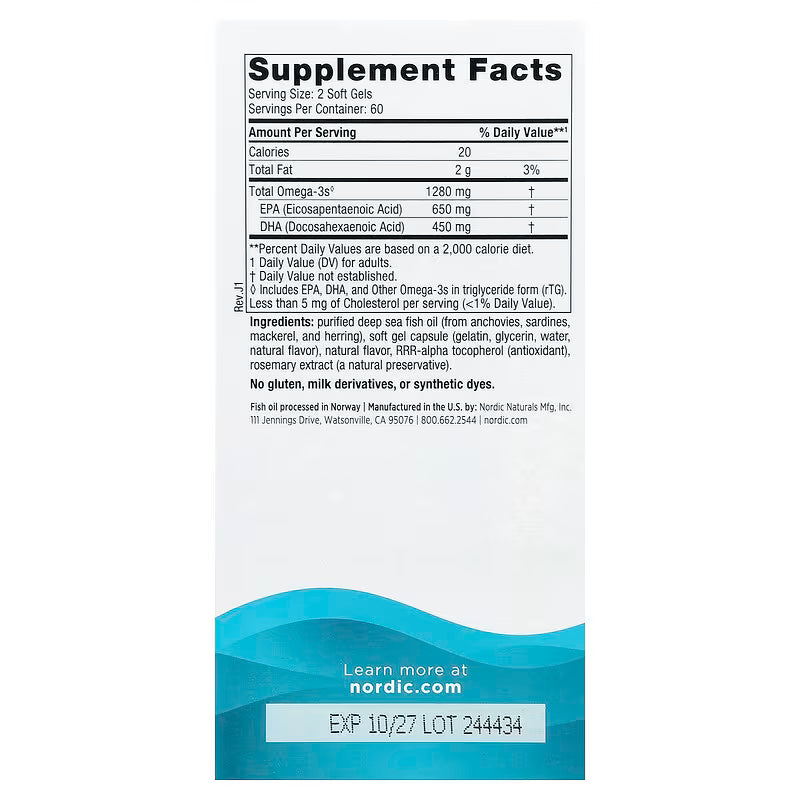 Ultimate Omega® from Nordic Naturals is the top-selling fish oil supplement in the USA‡, delivering 1,280 mg of concentrated omega-3s (EPA and DHA) per serving. This powerful formula supports heart health, brain function, immune response, and joint mobility.