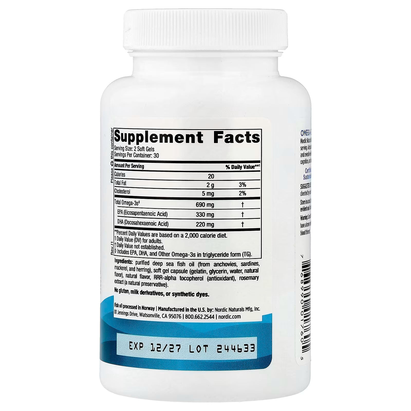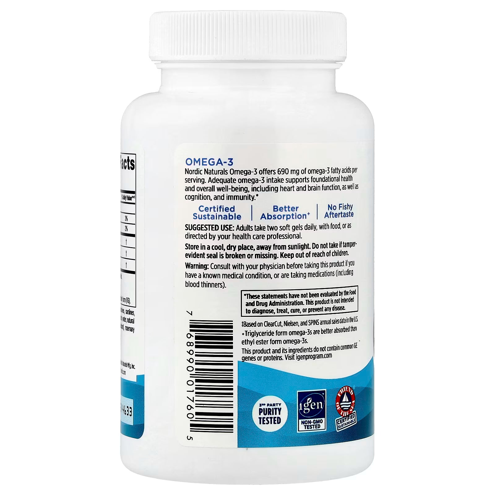 Support your overall health with Nordic Naturals Omega-3, a foundational fish oil supplement delivering 690 mg of omega-3 fatty acids per serving. Formulated to promote cognition, heart function, and immune support, this high-quality blend is ideal for daily wellness.