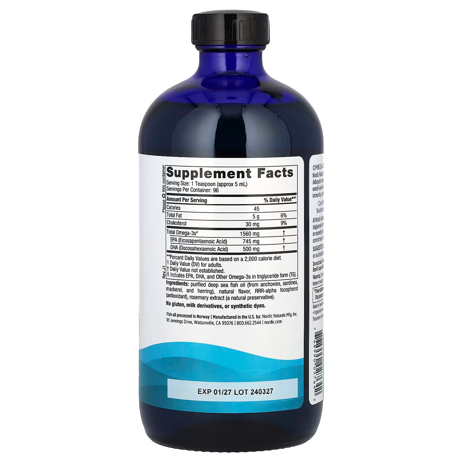 Nordic Naturals sources only fresh, wild-caught fish and uses the triglyceride form of omega-3s, which research shows offers superior absorption. With no fishy aftertaste and third-party tested for purity, it's a clean and effective way to meet your daily omega-3 needs.