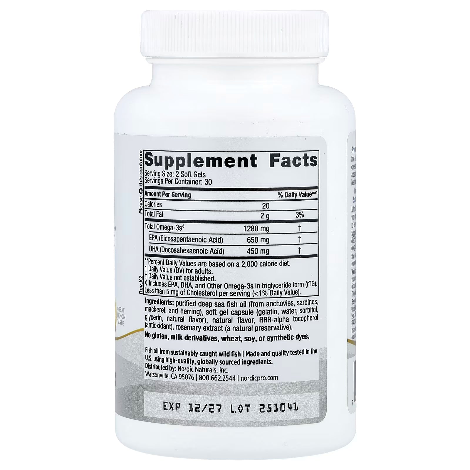 Support your overall wellness with Nordic Naturals ProOmega, a premium omega 3 fish oil supplement designed for high potency results. Each serving provides 650 mg of EPA and 450 mg of DHA, two essential omega 3 fatty acids that promote heart health, brain function, eye health, joint flexibility, and immune system support.