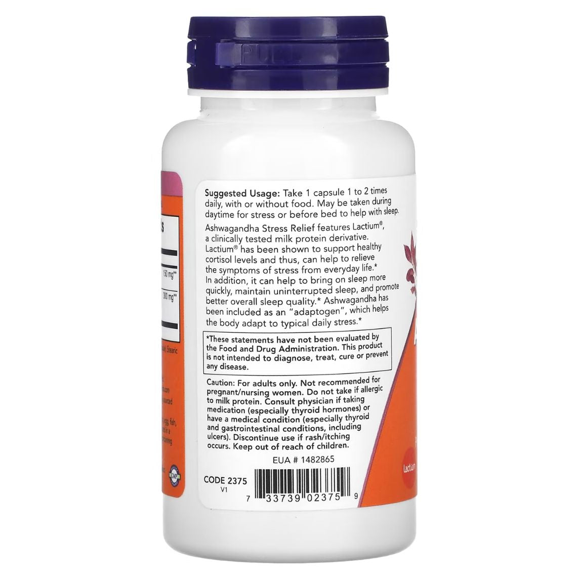 Ashwagandha Stress Relief features Lactium®, a clinically tested milk protein derivative. Lactium® has been shown to support healthy cortisol levels and thus, can help to relieve the symptoms of stress from everyday life. In addition, it can help to bring on sleep more quickly, maintain uninterrupted sleep, and promote better overall sleep quality. Ashwagandha has been included as an "adaptogen", which helps the body adapt to typical daily stress.