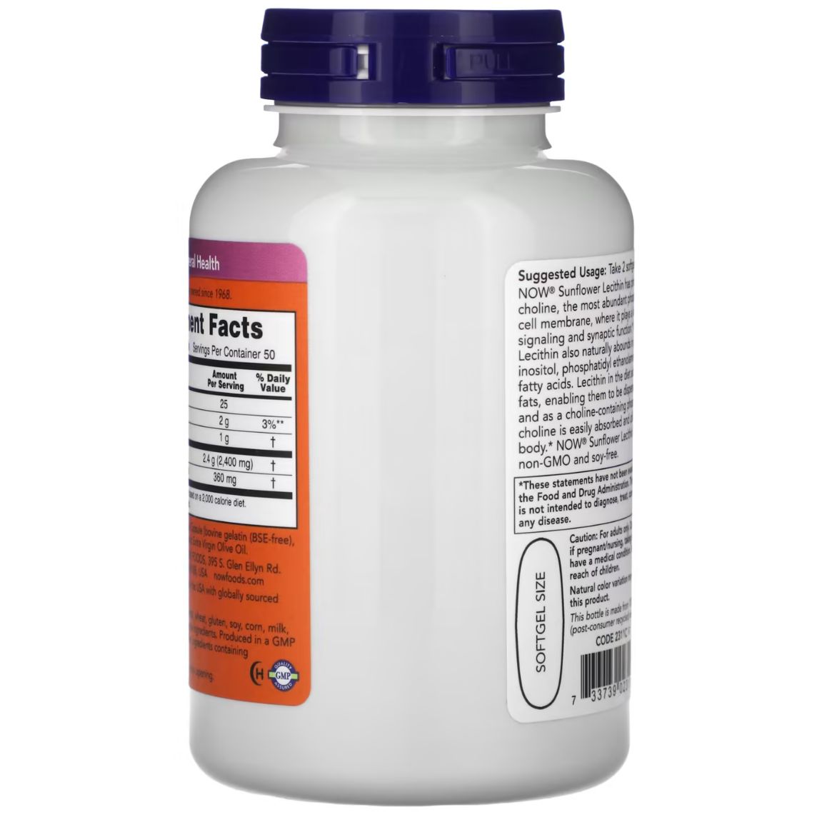 NOW Sunflower Lecithin Powder has Phosphatidyl Choline, the most abundant phospholipid in the cell membrane. It also naturally abounds in Phosphatidyl Inositol, Phosphatidyl Ethanolamine, and essential fatty acids. Lecithin aids in emulsifying fats, enabling them to be dispersed in water. Now Sunflower Lecithin is Soy-Free and non-GMO.
