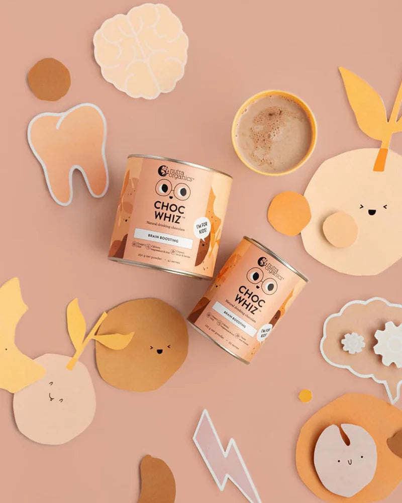 Choc Whiz is a delicious, nutrient-rich chocolate drink designed to fuel growing minds and active bodies. Made with organic cacao, super berries, and real choc chunks, it’s a wholesome twist on a classic Milo-style treat—creamy, chocolatey, and just the right amount of sweet.