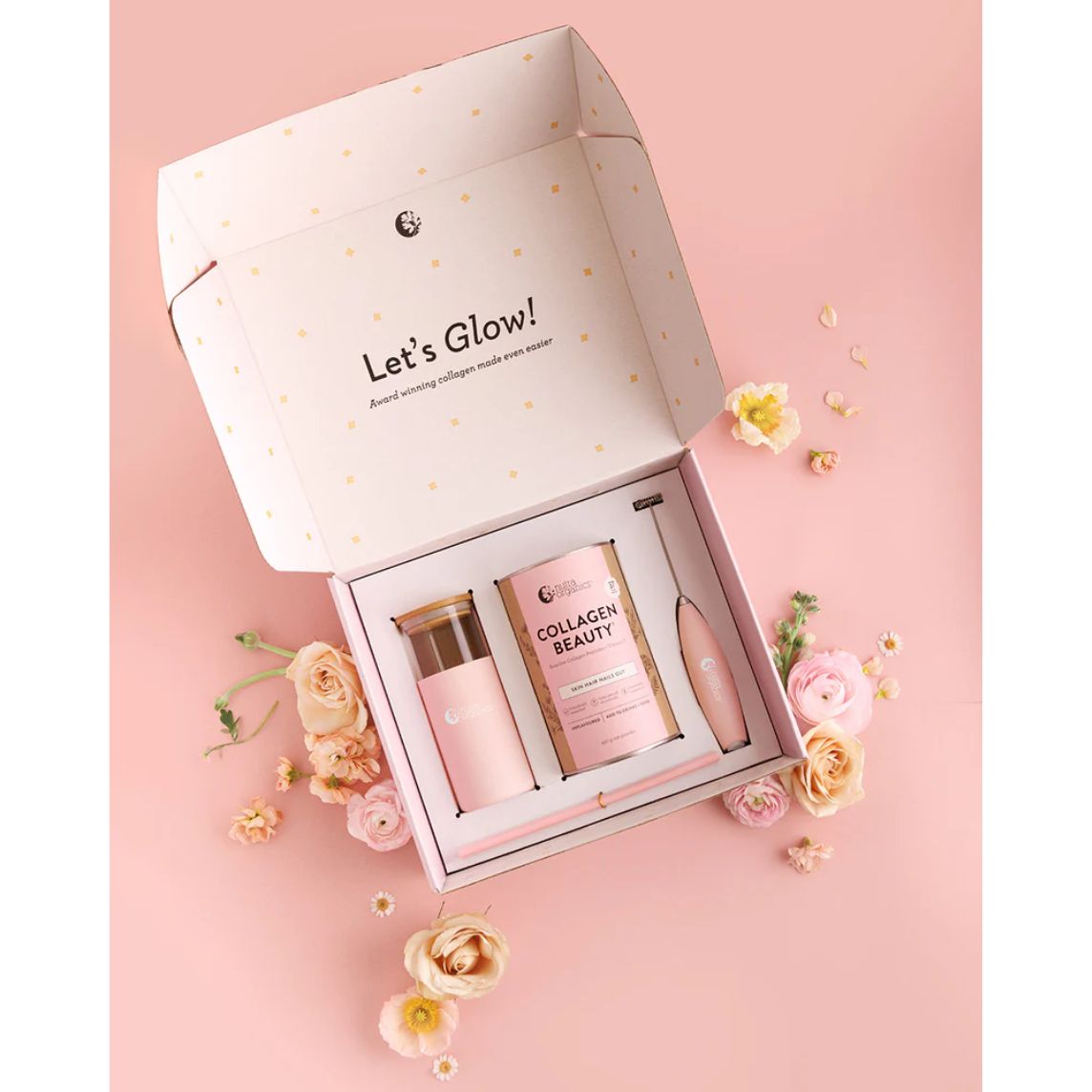 Elevate your Collagen Beauty routine with this beauty of a box! Featuring 450g Collagen Beauty, a Glass Drinking Flask and Pink Whiz Stick - the perfect trio for a daily wellness routine for beauty from the inside-out, thanks to Verisol Bioactive Collagen Peptides, wholefood zinc, vitamin C and silica to support skin, hair, nails and gut wellbeing. This pretty-in-pink box also makes for the perfect gift that’s wrapped and ready to glow.