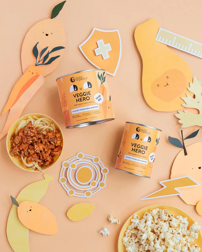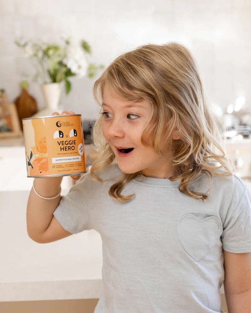 Struggling with fussy eaters? Veggie Hero is your secret weapon — a nutrient-rich wholefood blend designed to sneak essential veggies and super greens into everyday meals without a fuss.