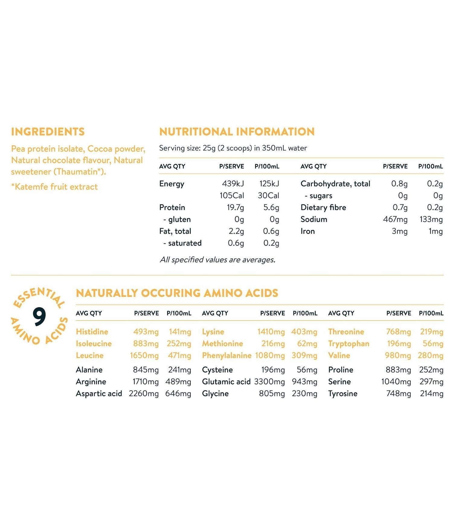 Clean Lean Protein provides the building blocks for vitality, repair, recovery and muscle growth. Our unique pea protein formula is 100% plant-based, low in allergens and extremely low in carbohydrates. Made with minimal processing and ingredients, it comes complete with all nine essential amino acids, is a natural source of iron, tasty and easy to digest.