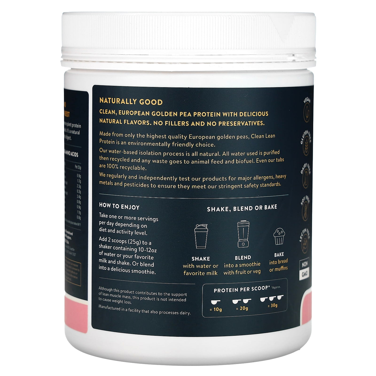 Clean Lean Protein is not just any protein; it comes from the highest quality European Golden Peas and is the most potent of all vegetable proteins. Most importantly, it contains ALL your essential amino acids and it's really easy to digest - no more bloating and no more discomfort.