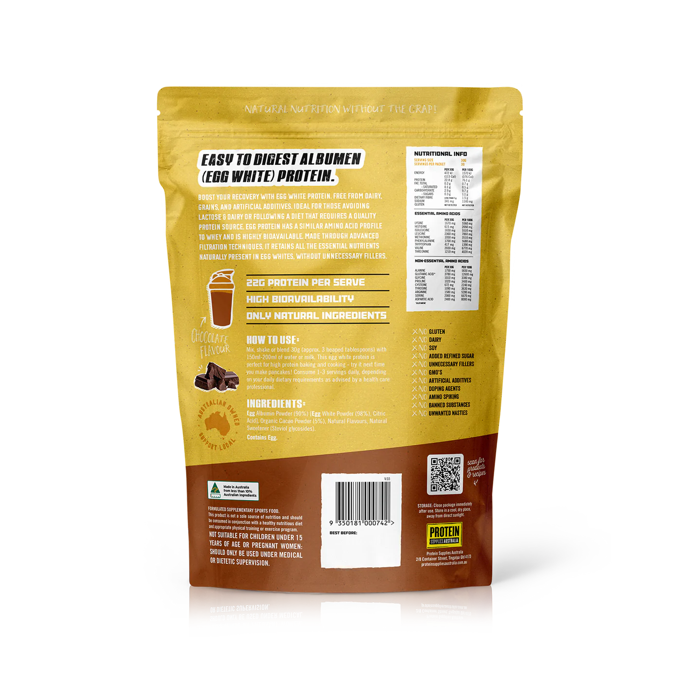 Looking for a high-protein alternative to whey? Our Egg White Protein – Chocolate is a clean, natural, and effective protein source — perfect for those who are lactose-intolerant, following a paleo lifestyle, or seeking a dairy-free option. Each serve delivers 22.8g of complete protein to support muscle growth, recovery, and overall wellness.