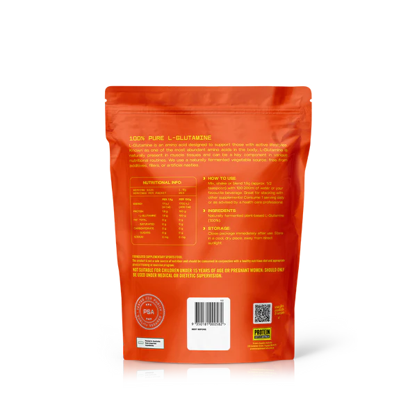 L-Glutamine is the body’s most abundant amino acid and a key player in muscle repair, immune strength and digestive health. Intense training, stress and illness can rapidly deplete natural glutamine levels, making supplementation crucial for maintaining peak performance and overall wellbeing. Our pharmaceutical-grade L-Glutamine helps restore these levels efficiently, supporting faster muscle recovery, reducing post-workout soreness and reinforcing immune resilience. Ideal for athletes, active individuals or anyone seeking to optimise gut and immune function, it’s a clean and powerful addition to any fitness or wellness routine.