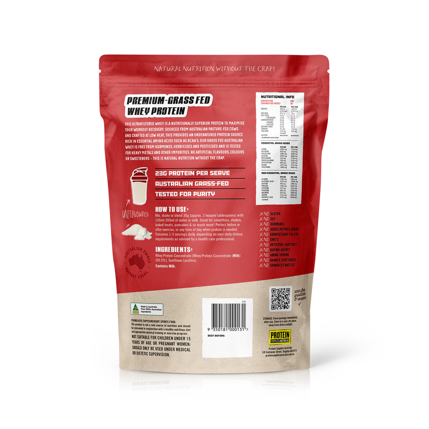 For muscle recovery and daily protein needs, you deserve a clean, powerful source of protein. Made in Australia from 100% Australian pasture-fed cows, our Whey Protein Concentrate (WPC) – Unflavoured delivers 23g of high-quality protein per serve to support strength, repair, and overall wellness.
