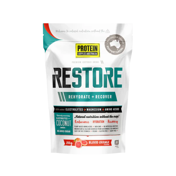Blood Orange Restore is a premium hydration and recovery drink designed to replenish fluids, electrolytes, and essential nutrients after training or intense activity. Formulated with BCAAs, L-Glutamine, magnesium, and calcium, it supports muscle recovery, rehydration, and overall performance, helping you bounce back faster and feel revitalised. Naturally flavoured with a refreshing burst of blood orange and lightly sweetened with coconut water, Restore provides a delicious, clean hydration experience without added sugar or artificial ingredients. Ideal for fitness enthusiasts, endurance athletes, or anyone seeking a natural electrolyte boost.
