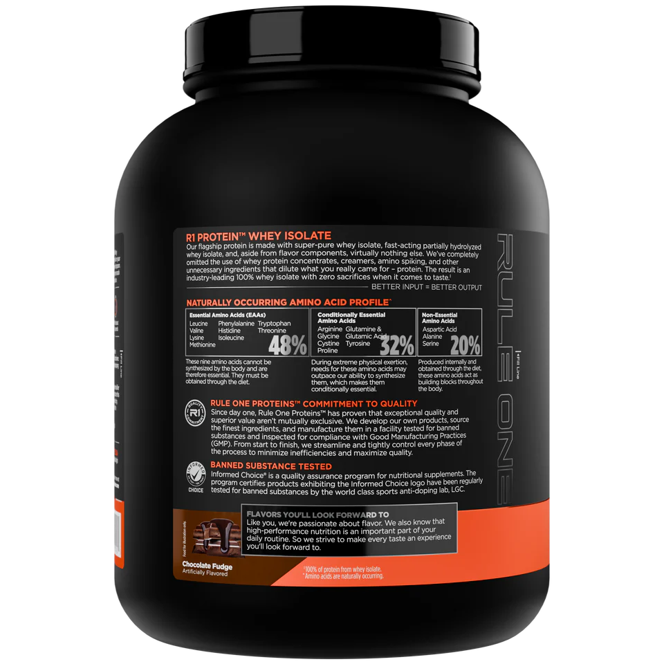 Rule 1 100% Whey Protein Isolate 2.27kg Chocolate Fudge 71 Servings