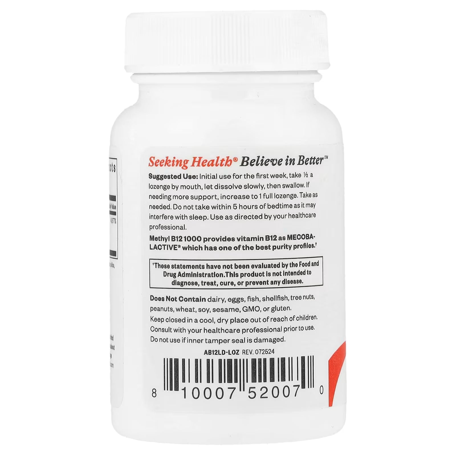 Methyl B12 1000 provides highly bioavailable vitamin B12 in the form of Mecobalactive®, recognized for its exceptional purity and effectiveness. Combined with adenosylcobalamin (Adeno B12), this formula offers comprehensive B12 support in a convenient, great-tasting lozenge.