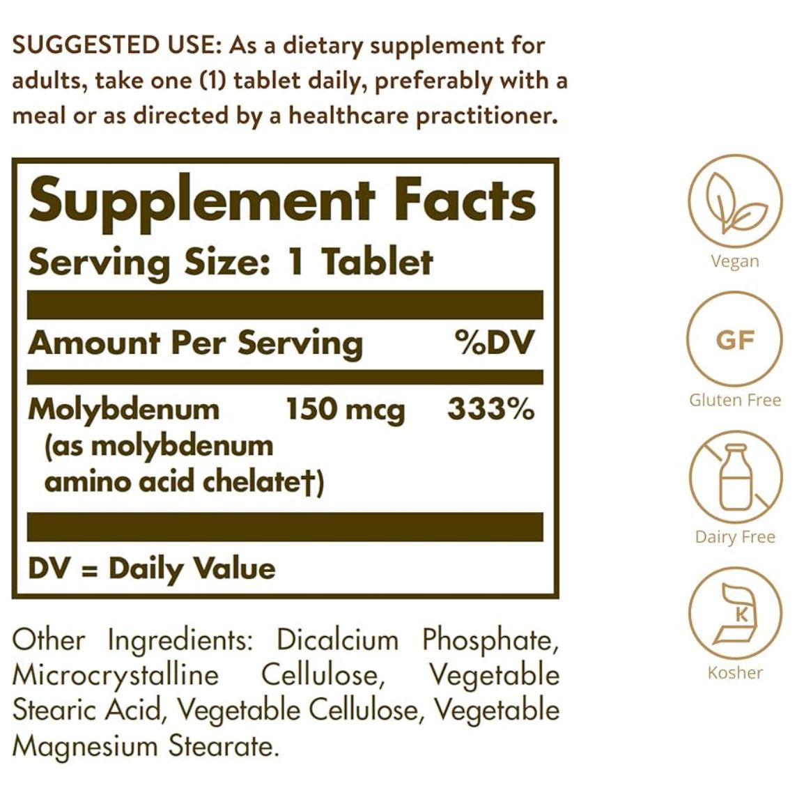 | Molybdenum (as molybdenum amino acid chelate†) | 150 mcg | 333% |