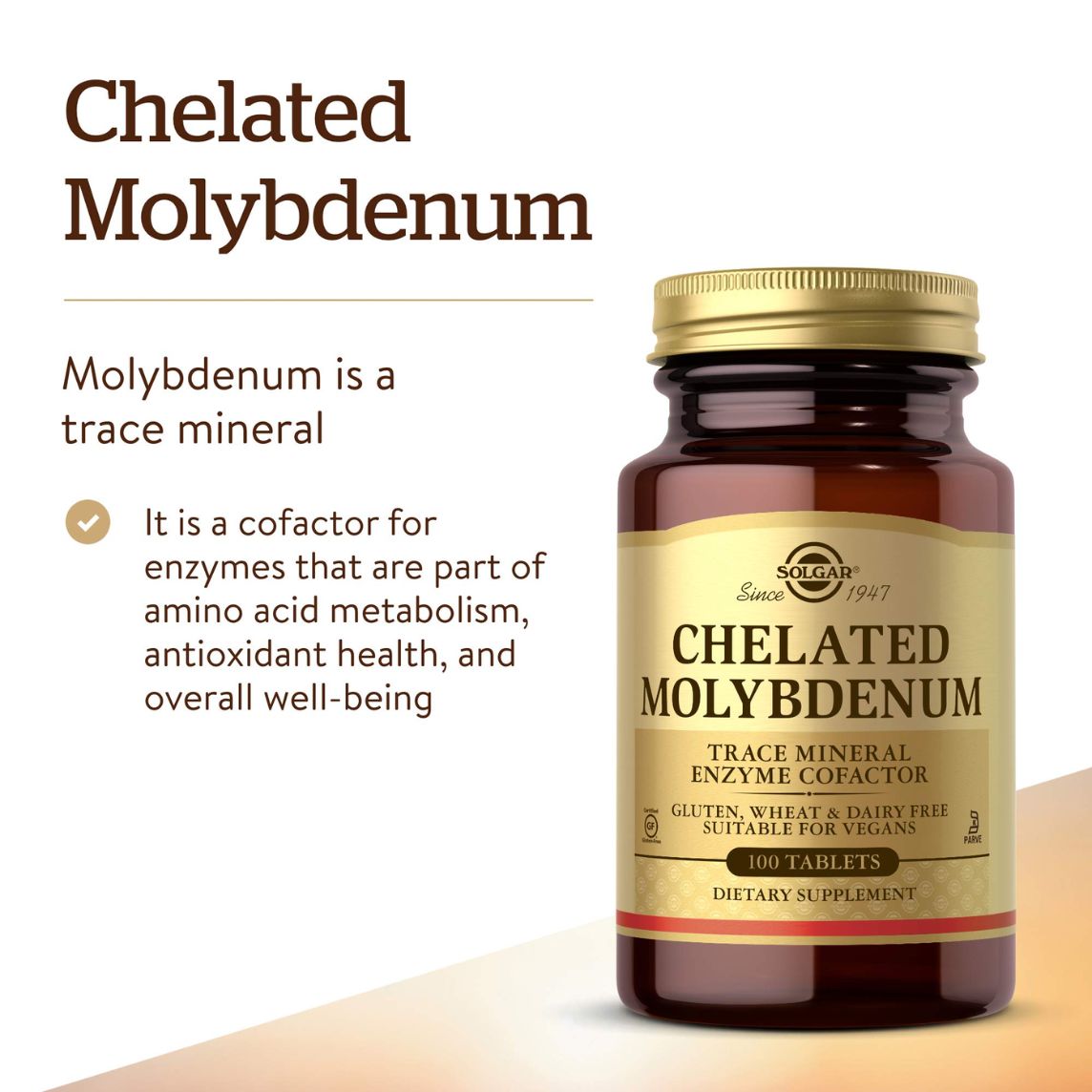 Molybdenum is a trace mineral and a cofactor for enzymes that are part of amino acid metabolism, antioxidant health, and overall well-being. This formulation provides a chelated form of molybdenum.