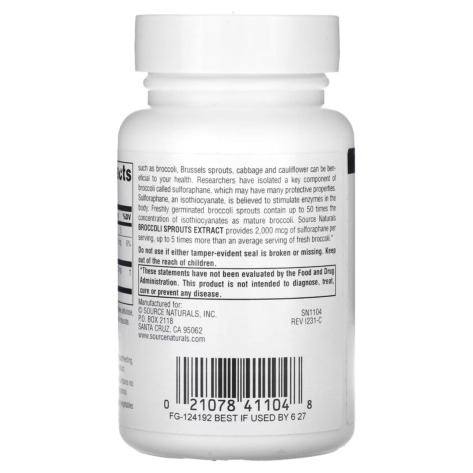 Freshly germinated broccoli sprouts can contain up to 50 times more isothiocyanates than mature broccoli. Source Naturals® Broccoli Sprouts Extract delivers 2,000 mcg of sulforaphane per serving—providing up to 5 times more than an average serving of fresh broccoli.