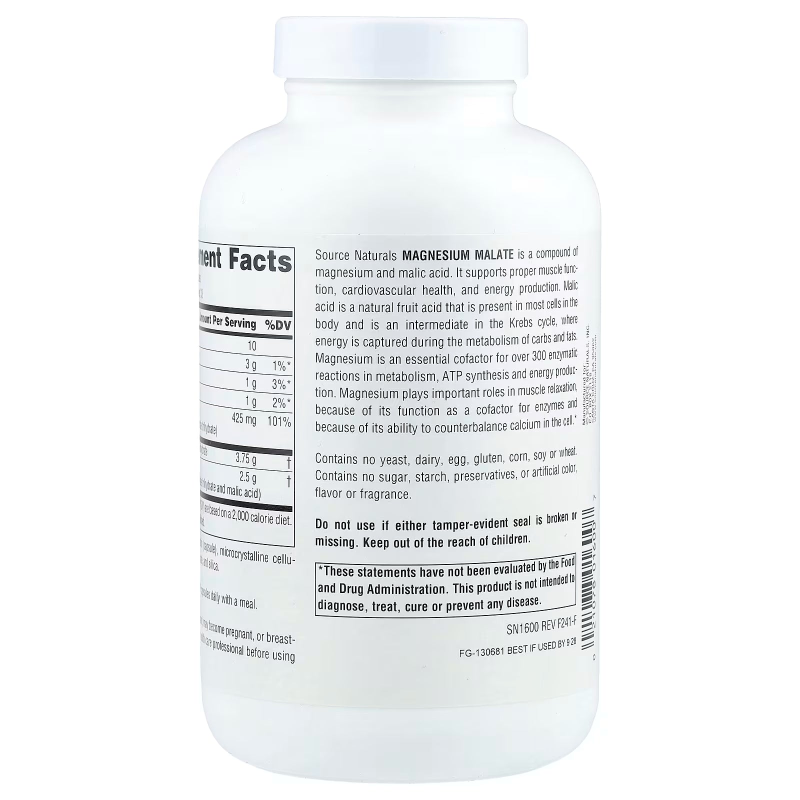 Support muscle function, energy production, and metabolic health with Source Naturals Magnesium Malate — a highly bioavailable form of magnesium combined with malic acid for enhanced effectiveness.