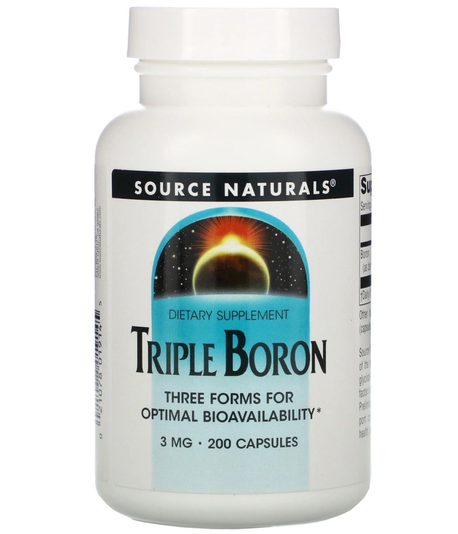 Source Naturals Triple Boron contains three bioavailable forms of the trace mineral boron, including one chelated form for enhanced delivery. Current research suggests boron is a factor in maintaining strong, healthy bones partly due to its positive affects on vital components of the body's own bone maintenance cycles. Preliminary studies also suggests boron may play an important part in supporting prostate and joint health as well as cognitive function.