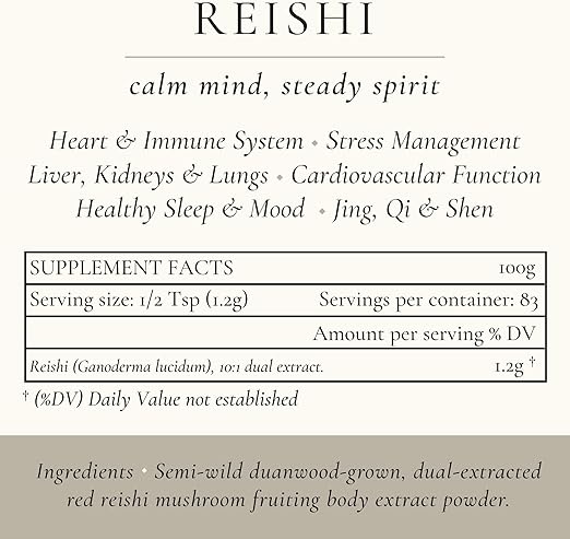Revered for over 4,000 years in traditional Eastern herbalism, Reishi has long been known as the “Mushroom of Immortality” for its deeply nourishing and harmonising qualities. Celebrated as a superior tonic herb, it is traditionally used to calm the spirit, support resilience to stress, and promote restorative sleep. Working holistically across the body and mind, Reishi helps cultivate grounded energy, inner balance, and a greater sense of overall wellbeing. Our dual-extracted Reishi is sourced Dì Dào from the pristine Dabie Mountains of China, ensuring authenticity, purity, and full-spectrum potency.